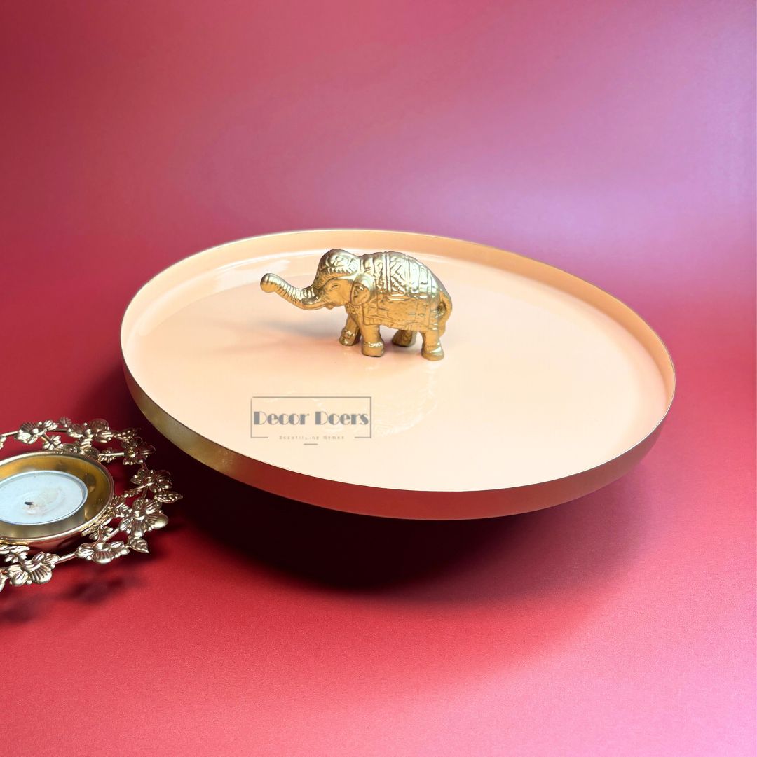Bring home elegance with the Premium Stylish Elephant Metal Platter - Handcrafted & Decorative by Decor Doers. Crafted with a sophisticated champagne finish and adorned with a finely designed golden elephant, this handcrafted decorative platter is a blend of tradition and luxury. Perfect for serving dry fruits, sweets, or snacks, it also doubles as a decorative centerpiece and a premium gift platter for special occasions.